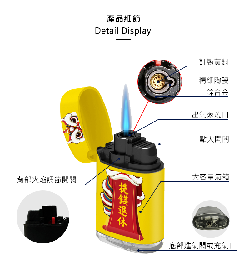 ● 藍焰溫度可達1100°C可點雪茄